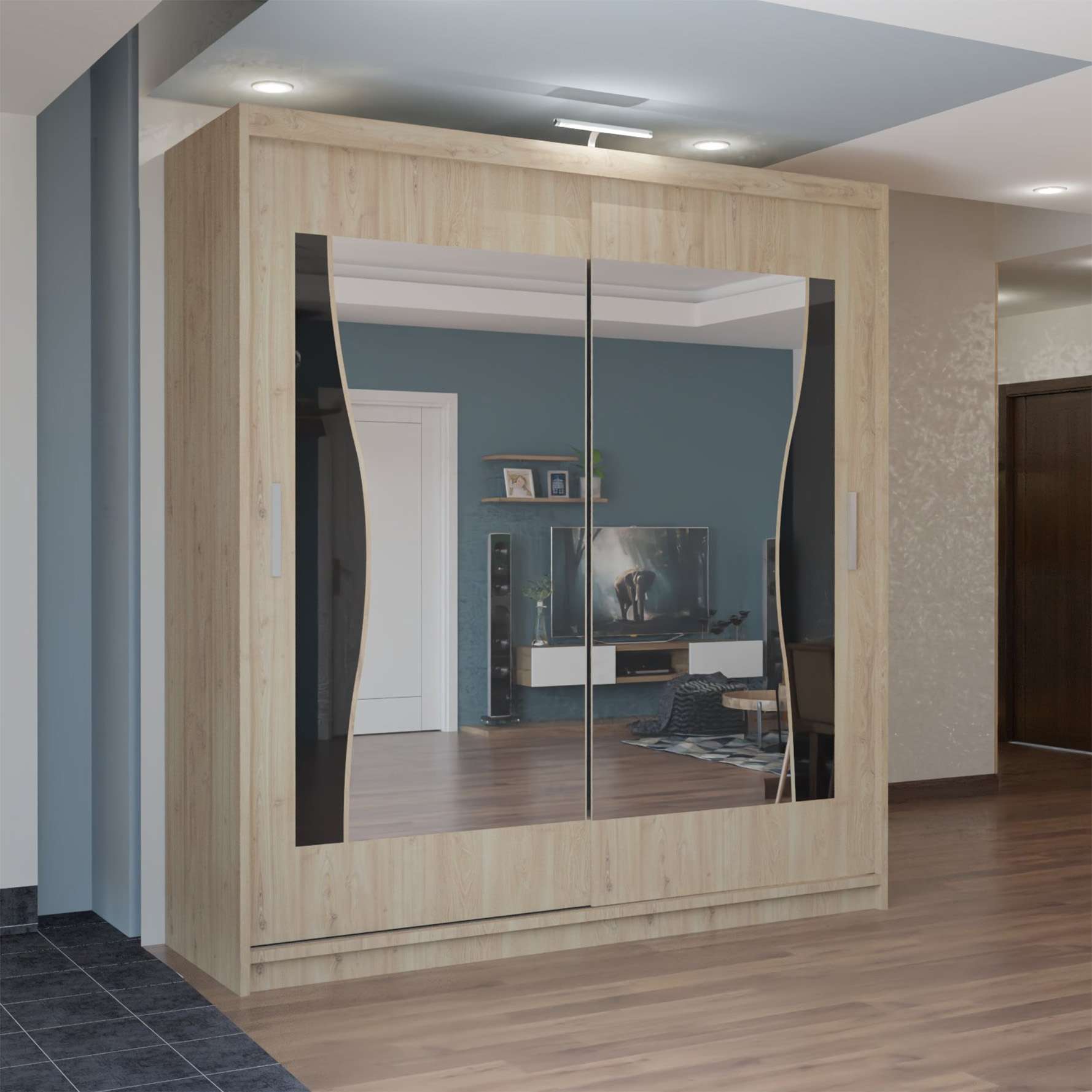 Its built-in LED strip lighting creates a premium visual effect, ideal for modern apartments, new builds, stylish master bedrooms or studio rooms.