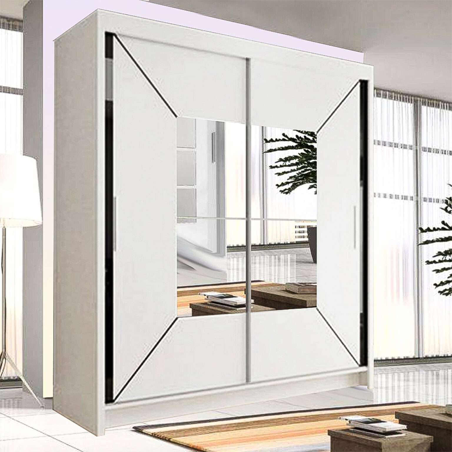 wardrobe offers a striking full-mirror exterior and a smooth sliding mechanism that fits any room layout.